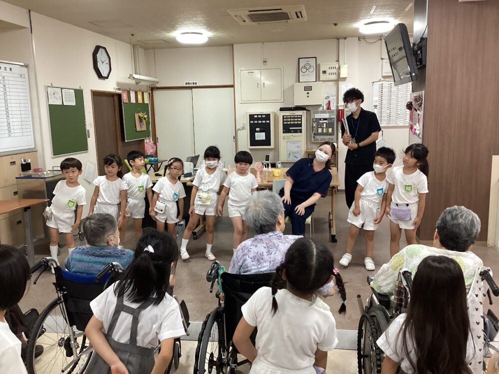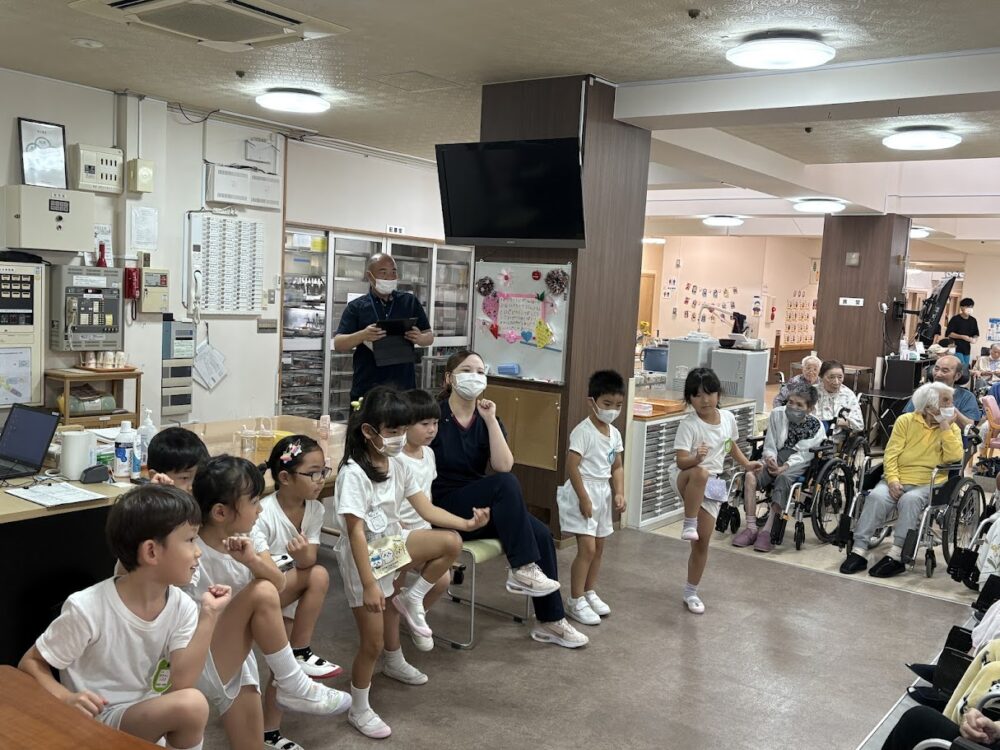 一生懸命体操をしている園児たちのキラキラした笑顔に、利用者の皆さんも自然とにっこり(^^♪