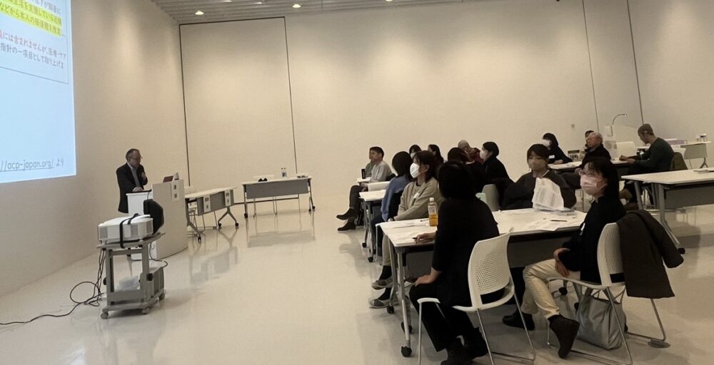 講演では、ACP(人生会議)を「書面を作ること」や「事前指示を残すこと」だけで完結させるのではなく、地域の中で育まれ、人と人との関係性の中で紡がれていく営みとして捉える視点の大切さが語られました。