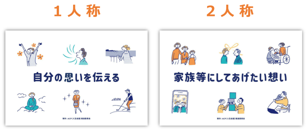 (1人称) ・自分が近い将来亡くなるという事を考えた事がなかったので、どんな選択をするか、とても悩んだ。 ・自分はとてもネガティブな性格なので、怖い事や不安な事は聞いてほしい。 ・最期は自宅で家族に見守られながら、自分も家族も不安なく笑って過ごしたい。