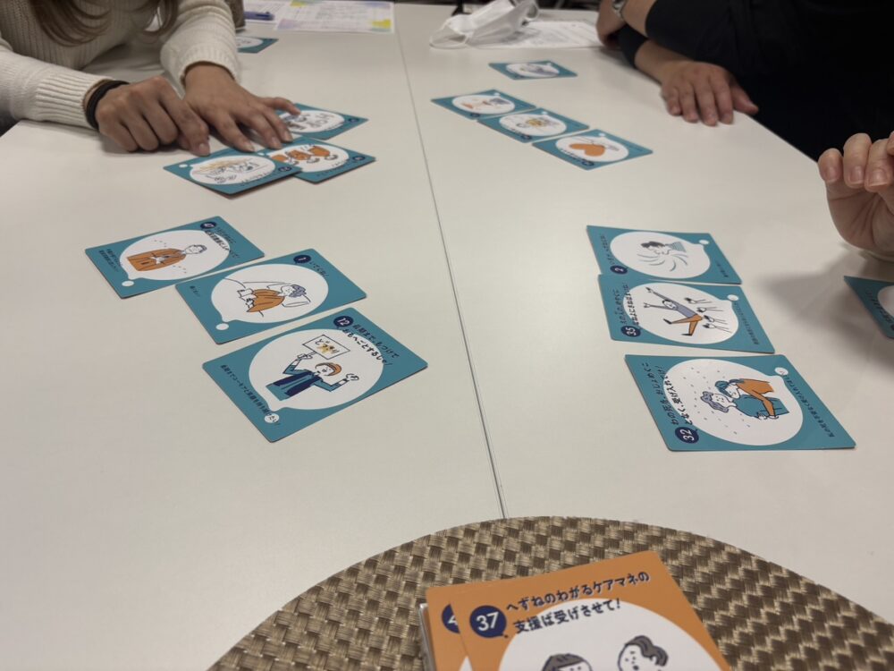 「○○?カード」ゲームを行い、“今後、自分たちのケアの中でどのように活かしていくか”について、それぞれの考えを話していただきました(#^^#)